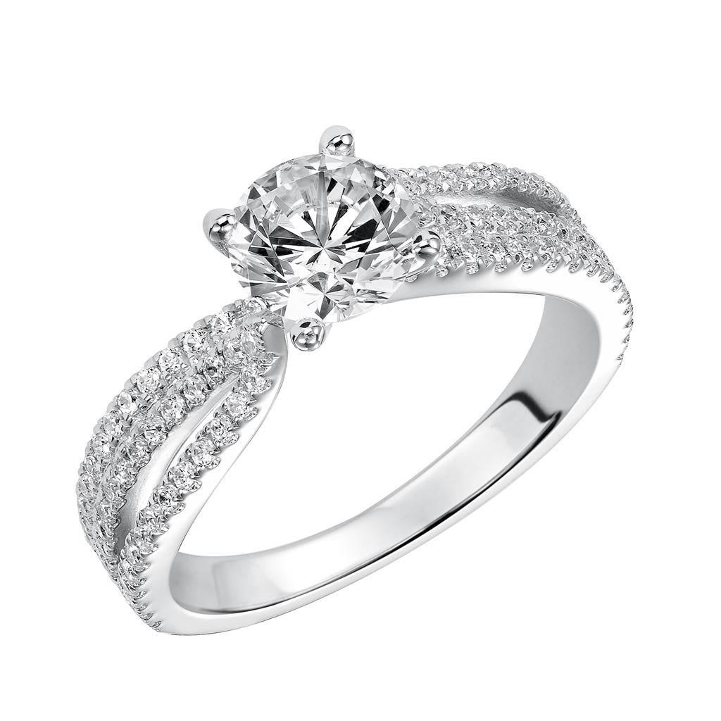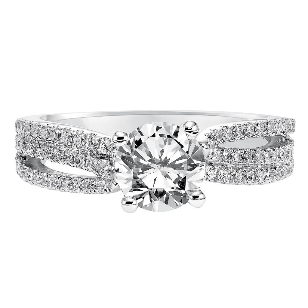 SAMPLE TRIPLE BAND SET - 14KT WHITE GOLD TRIPLE BAND SET SEMI MOUNT ENGAGEMENT RING 0.38 CARAT TOTAL WEIGHT SIDE DIAMOND (CZ) & CZ CENTER SIZE 6.5 BY FREDERICK GOLDMAN