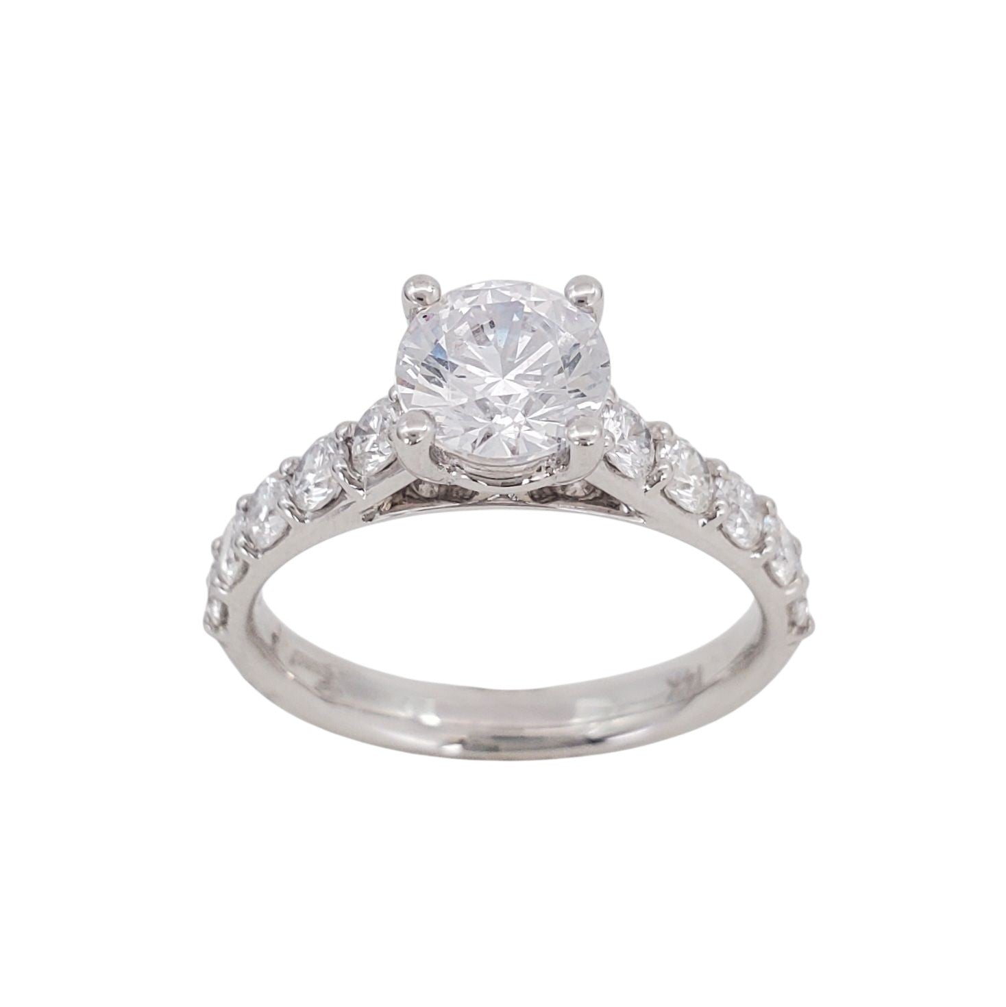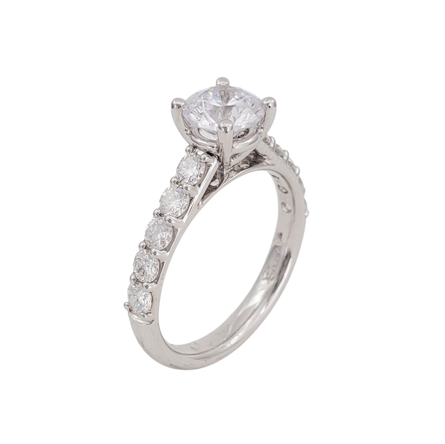 Diamond semi-mount in 14 karat white gold featuring 0.73 carat total weight of round brilliant diamonds set in its shoulders by Coast Diamond. *CZ center, desired center stone sold separately.
