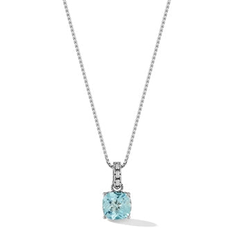 BLUE TOPAZ PENDANT WITH A CUSION CUT BLUE TOPAZ IN THE CENTER ON AN ADJ. 1.6MM BOX CHAIN SIZE 18-20 INCHES IN LENGTH