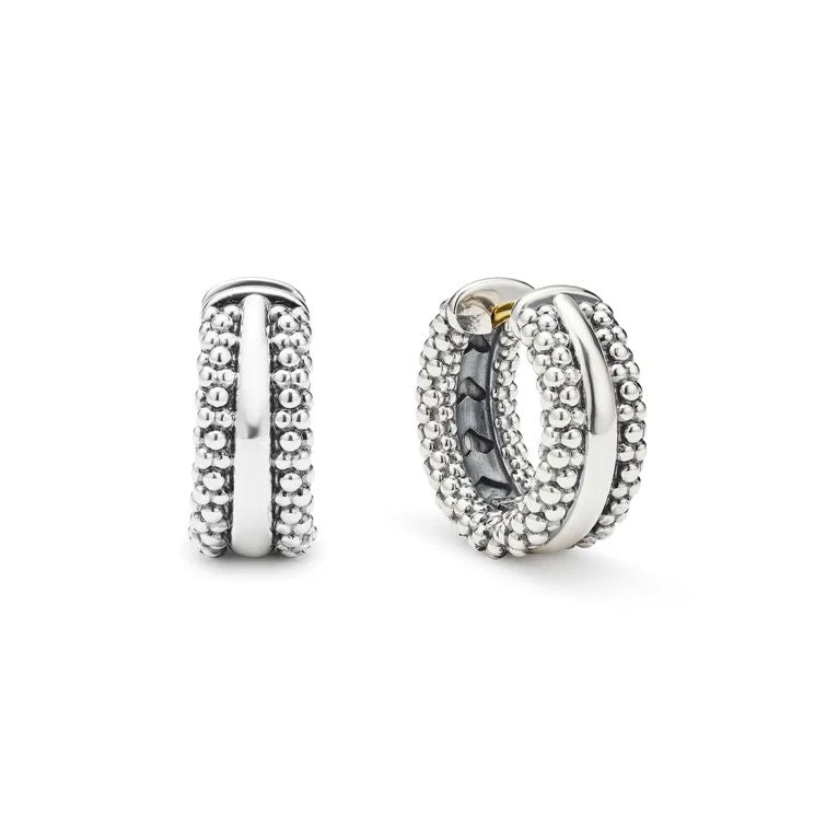 HUGGIE EARRINGS IN STERLING SILVER WITH 18K YELLOW GOLD POST 16 X 7MM FROM THE SIGNATURE CAVIAR COLLECTION BY LAGOS