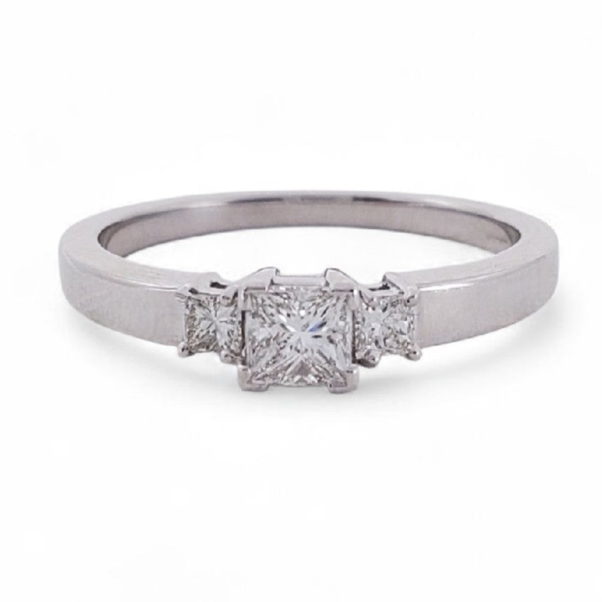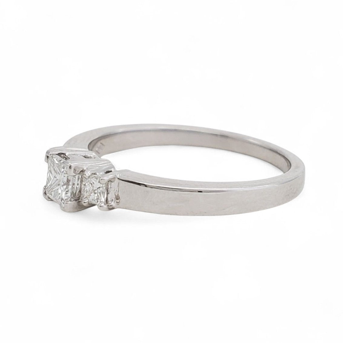 PRNCS CUT DIAS - 18KT WHITE GOLD RING PRINCESS CUT DIAMONDS CENTER STONE {GIA #1478983261} 0.30 CARAT 2 SIDE PRINCESS CUT DIAMONDS 0.14 CARAT TOTAL GCOLOR SI1 CLARITY - 0.44 CARAT TOTAL WEIGHT SIZE 6.5 BY BENGAL